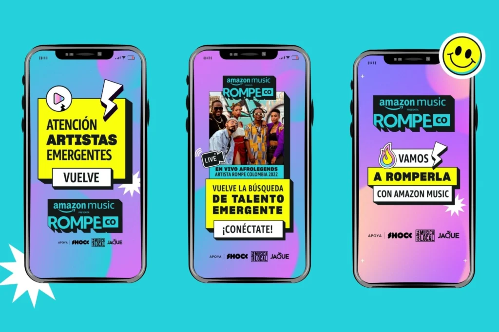 Rompe Colombia es la segunda temporada del programa de Amazon Music que apoya a los artistas emergentes del país, brindándoles visibilidad y oportunidades para impulsar sus carreras. A través de una convocatoria abierta, los artistas de Medellín, Cali y Bogotá pueden participar presentando audiciones con canciones propias o covers.